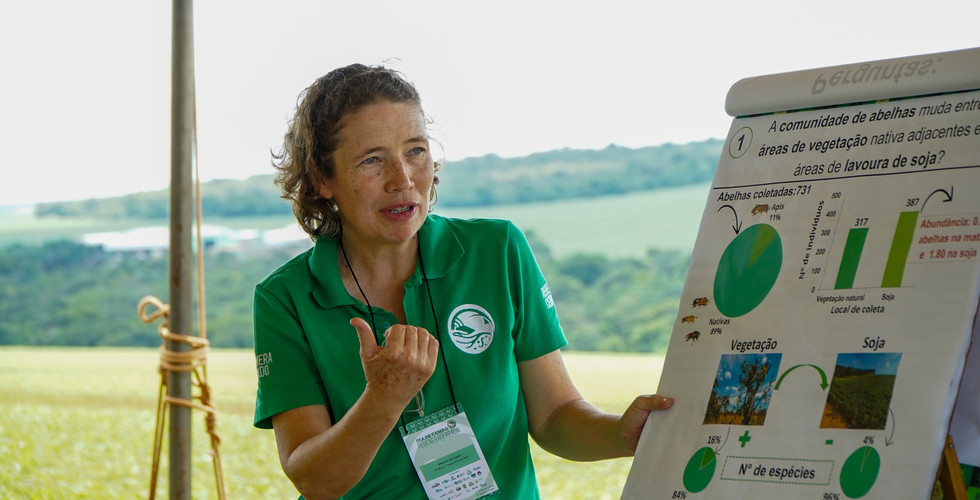 “Mostramos ainda o quanto é desejável e importante, além do uso de bioinsumos em substituição aos pesticidas químicos, a diversificação da vegetação, como a manutenção de áreas de vegetação nativa, que contribuem para uma maior abundância e diversidade de abelhas, aumentando assim a polinização na soja, que traz como consequência o aumento da produtividade”, relata a pesquisadora.